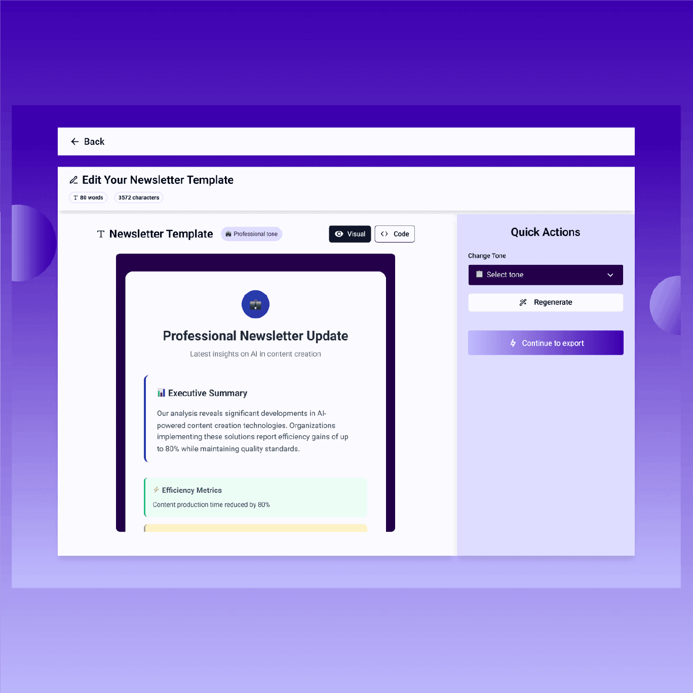 Offers editable formatting (tone selection, sections, CTA blocks).