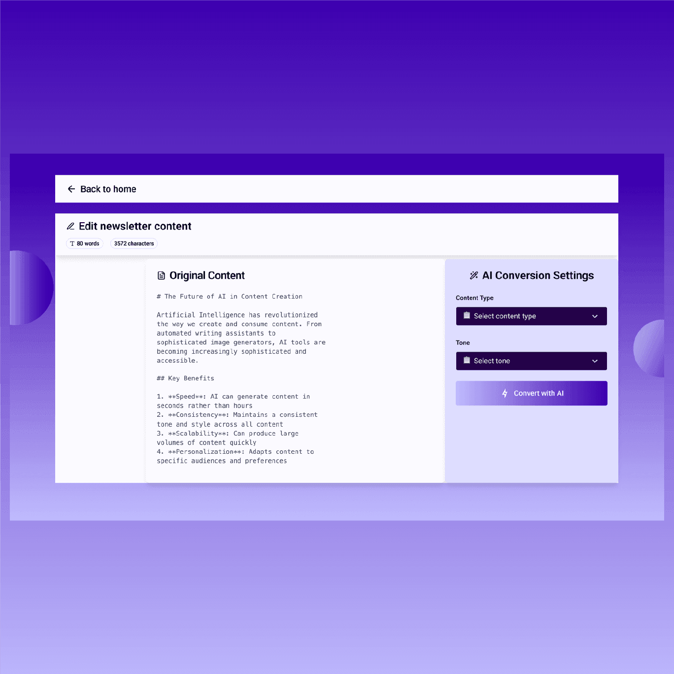 Manually rewriting blog content into newsletter format is time-consuming and repetitive.