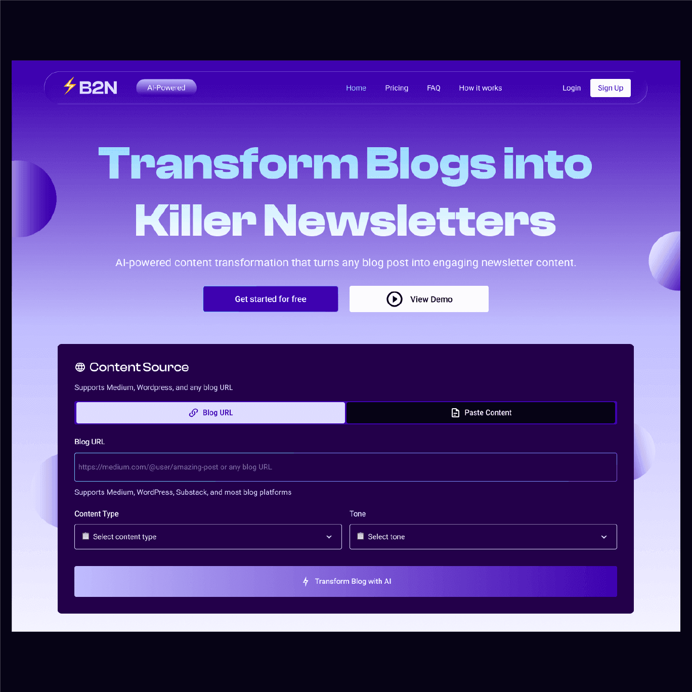 B2N (Blog to Newsletter) solves this by providing a minimal, focused micro-SaaS that: