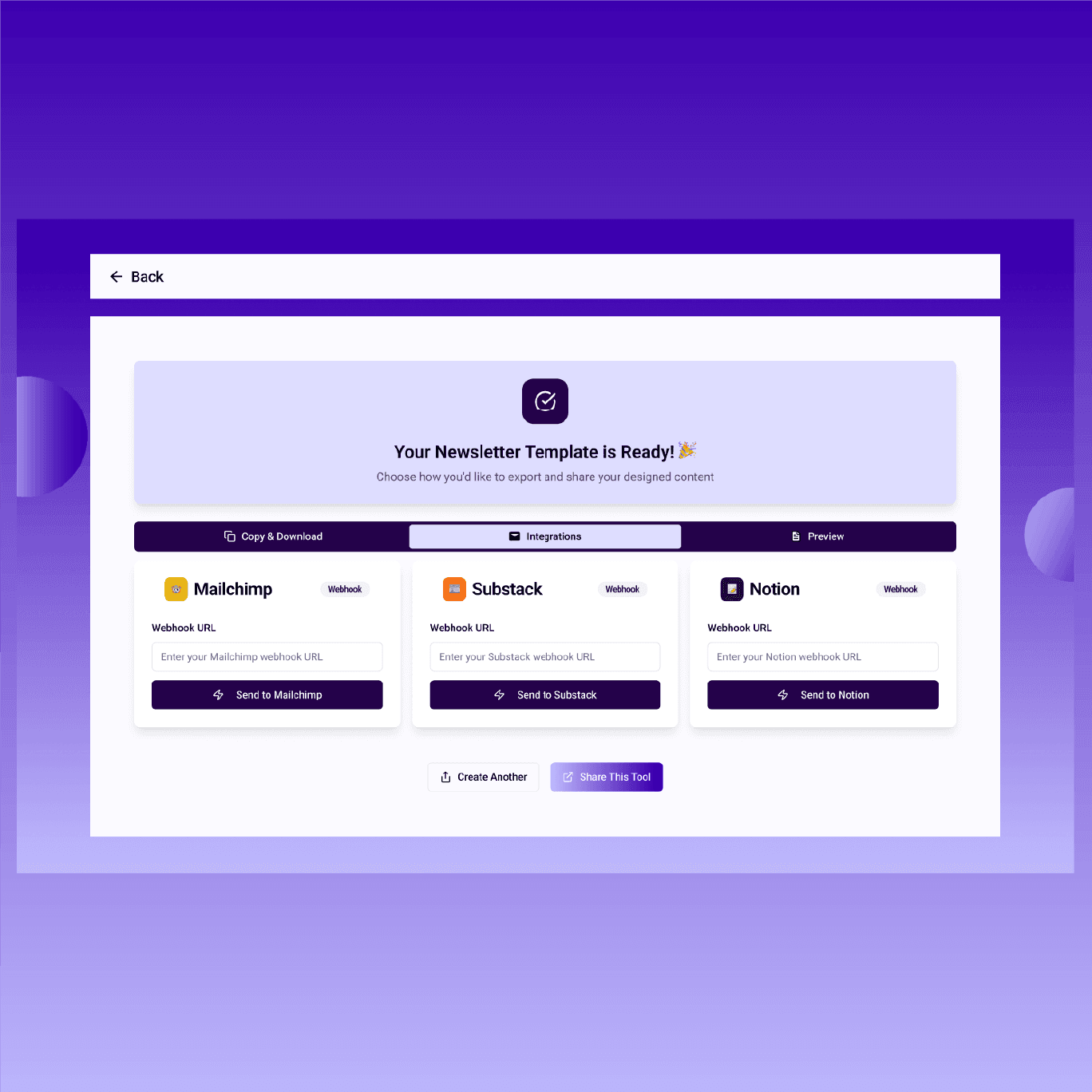 B2N is a focused micro-SaaS UX project that bridges a real workflow gap for content creators. It takes the repetitive pain point of newsletter creation and transforms it into a simple, efficient, and elegant experience.