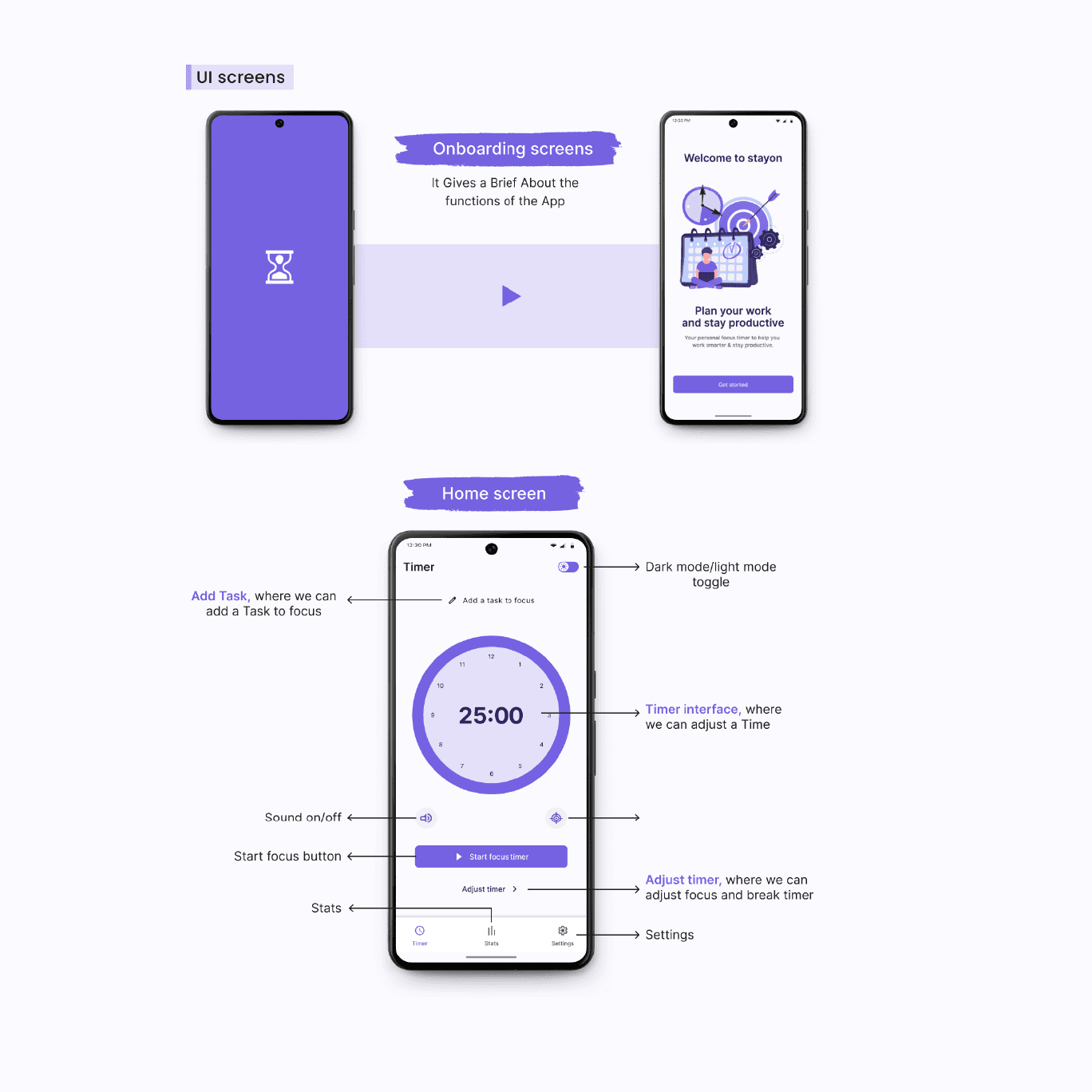 StayOn is a minimalist focus timer app designed to help users start focusing easily, stay in flow, and build sustainable habits.